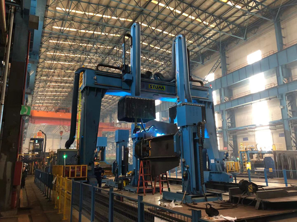 产品简介:船舶结构件机器人嘿嘿连载APP黄版下载工作站,其中包含龙门行走机构(X、Y、Z轴)、大负载升降变位机、柔性焊装夹具、焊烟除尘装置,完成不同型号船舶结构件的嘿嘿连载APP黄版下载。